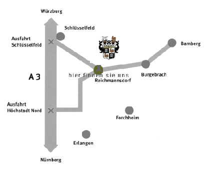 Schloßgasthof Reichmannsdorf Untere Hauptstraße 2 96132 Schlüsselfeld Ortsteil Reichmannsdorf Inhaberin Melanie Löhr Telefon 09546-92 14 14 Telefax 09548-92 10 88 |